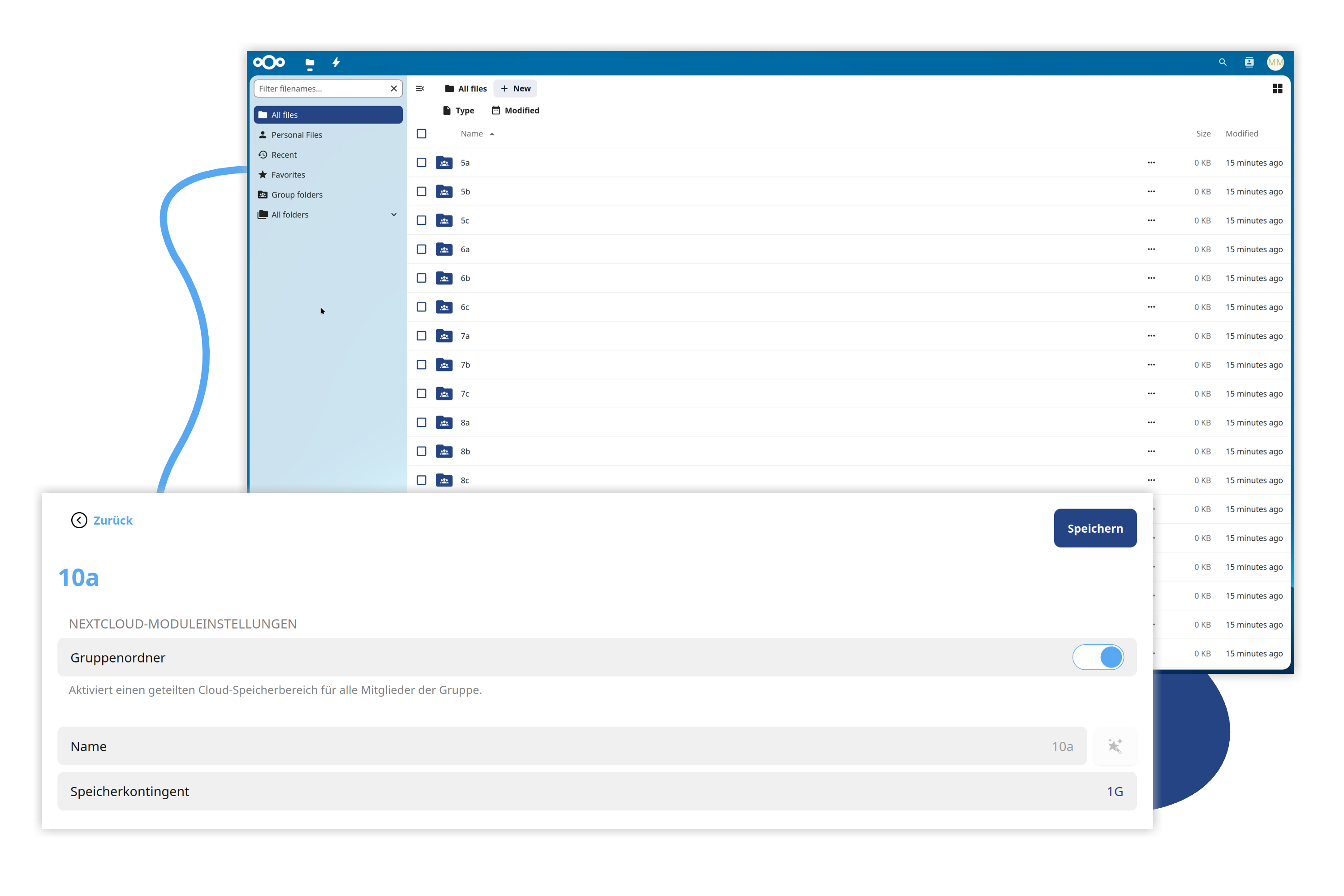 Benutzer und Gruppen werden so automatisch in den einzelnen Modulen abgebildet, sodass beispielsweise eine Schulklasse mit einem E-Mail-Verteiler und einer für die Schüler zugänglichen Dateiablage im Cloud-Modul verknüpft ist.